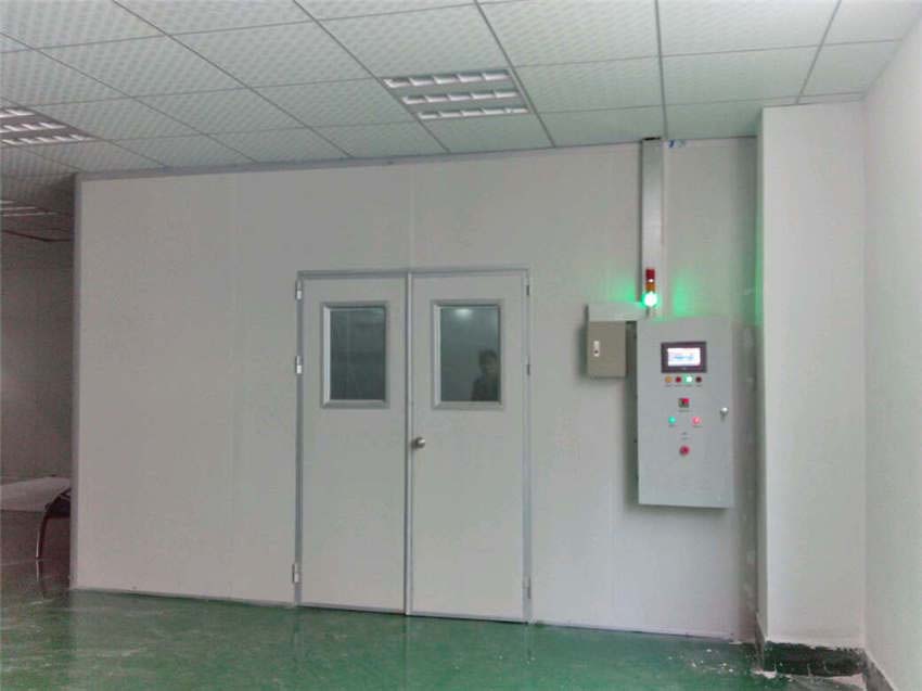 1.主要技術(shù)參數(shù): 1.1 溫度范圍:常溫+10℃--85℃(溫度可以訂制) 1.2 溫度波動:±0.5℃; 1.3 溫度偏差: ±2℃(可根據(jù)客戶要求設(shè)計精度,在一定條件下 高可以做到±1℃) 1.4 房內(nèi)尺寸:溫度可以訂制 1.5 運行方式:溫度可調(diào),恒定運行或程序運行(可選觸摸屏式程序運行) 1.6 安裝電源:AC~380V;50 Hz; 1.7 噪音大小:≦65分貝 2:室體結(jié)構(gòu)及用料說明: 2.1 墻體材料:庫體采用雙面巖棉彩鋼保溫庫板 2.2 門洞與視窗設(shè)計:根據(jù)實際要求; 3:風(fēng)力恒溫系統(tǒng); 風(fēng)力管道系統(tǒng)符合《通風(fēng)與空調(diào)工程施工質(zhì)量驗收規(guī)范》GB50243-2002標(biāo)準(zhǔn),通常采用循環(huán)系統(tǒng)、加熱系統(tǒng)和超溫排風(fēng)系統(tǒng)組成。循環(huán)系統(tǒng)、超溫排風(fēng)系統(tǒng)、加熱系統(tǒng)及配套的風(fēng)道系統(tǒng)安裝于老化房頂部,不占用其它空間,,循環(huán)系統(tǒng)采用循環(huán)風(fēng)機和配套風(fēng)管進(jìn)行循環(huán),可保證測試區(qū)內(nèi)溫度均勻,加熱系統(tǒng)采用電熱器加熱,加熱器放置于老化房頂上循環(huán)風(fēng)道中,四周加防火隔熱材料。采用PLC溫度模塊或PID儀表控制,溫度到達(dá)產(chǎn)品所需要溫度后,根據(jù)室內(nèi)溫度波動自動調(diào)節(jié)加熱器功率大小配合保溫庫板的保溫性,使室內(nèi)溫度精確穩(wěn)定在所設(shè)定溫度數(shù)值可在指定的時間內(nèi)內(nèi)將室溫加至設(shè)定溫度,當(dāng)溫度升至設(shè)定值時加熱器停止加熱.加熱器具有過熱保護(hù)裝置(EGO),如客戶自身產(chǎn)品發(fā)熱則采用過熱排風(fēng)系統(tǒng),發(fā)熱量小采用電動百葉自動負(fù)壓排風(fēng),發(fā)熱量大則采用低噪音風(fēng)機排風(fēng),用變頻器控制其轉(zhuǎn)速。 循環(huán)控溫過程:當(dāng)開機時加熱器開始加熱 溫度到達(dá)設(shè)定值時加熱器停止加熱 隨著時間的推移產(chǎn)品區(qū)溫度會逐漸上升當(dāng)溫度超過設(shè)定上限時 排風(fēng)系統(tǒng)開始動作將產(chǎn)品區(qū)過熱氣體排室外。變頻器會控制室外排風(fēng)機進(jìn)行運轉(zhuǎn),當(dāng)溫度下降至設(shè)定值下限時風(fēng)機停止排風(fēng),排風(fēng)系統(tǒng)同時關(guān)閉。循環(huán)系統(tǒng)在老化產(chǎn)品的過程中始終保持循環(huán)狀態(tài),以保證溫度均衡。整套系統(tǒng)動作具有性能穩(wěn)定,控制精確、溫度波動小,均衡度高、噪音小等特點。 噪音處理:采用低分貝的高品質(zhì)循環(huán)風(fēng)機,風(fēng)管采用3mm厚石棉包裹,既保溫又降低噪音,根據(jù)聲學(xué)原理,所有動態(tài)部位采用帆布、彈簧進(jìn)行軟接處理,力求把噪音降到 標(biāo)準(zhǔn)。 4:老化房控制系統(tǒng); 4.1 PID控制: 4.11電控系統(tǒng)采用PID控制,進(jìn)口,高精度LED數(shù)顯控制器 4.12溫度測量:K型熱電偶. 4.13控制輸出:固態(tài)繼電器SSR輸出; 4.14精度:0.1℃(顯示范圍) 4.2 PLC控制4.21電控系統(tǒng)采用PLC控制,真彩觸摸屏操作。 4.22溫度測量:PT100熱電偶。采用多點控制,以保證均勻度 4.23溫控儀表:人機界面觸摸屏溫度控制器可以對測試區(qū)溫度進(jìn)行滾動實時顯示和曲線顯示, 4.24控制輸出:固態(tài)繼電器SSR輸出; 4.25控制精度:0.1℃(顯示范圍) 控制系統(tǒng)還設(shè)定了各種保護(hù)功能,有超溫報警保護(hù)、風(fēng)機故障報警保護(hù),計時保護(hù)功能等,完善的保護(hù)功能確保了老化房能長期穩(wěn)定無故障運行,用兩級PID調(diào)節(jié)加熱量,實現(xiàn)對測試區(qū)(產(chǎn)品區(qū))溫度的精確控制,同時溫度控制器可以對測試區(qū)任意溫度進(jìn)行滾動實時顯示,有獨立負(fù)載的還可以對負(fù)載區(qū)的溫度進(jìn)行監(jiān)控,防止負(fù)載區(qū)溫度過高,方便客戶準(zhǔn)確掌握測試區(qū)溫度情況??刂葡到y(tǒng)還設(shè)定了各種保護(hù)功能,有超溫報警保護(hù)、風(fēng)機故障報警保護(hù)、無風(fēng)報警保護(hù)、室內(nèi)煙氣感應(yīng)報警保護(hù)等,完善的保護(hù)功能確保了老化房能長期穩(wěn)定無故障運行 5:產(chǎn)品測試架:(可選) 產(chǎn)品測試架通常根據(jù)客戶產(chǎn)品和要求進(jìn)行設(shè)計制。如需負(fù)載,則做相對應(yīng)的負(fù)載框架配套生產(chǎn),一般測試架的設(shè)計要求結(jié)構(gòu)穩(wěn)固合理,操作方便,外形美觀、滿足功能等特點, 限度的滿足客戶的要求。 6:控制系統(tǒng)設(shè)計以及安全保護(hù)措施: 6.1電控設(shè)計參照《低壓配電設(shè)計規(guī)范》GB50054-95,《供配電設(shè)計規(guī)范》GB5002S2-95,《電氣裝置安裝工程接地裝置施工及驗收規(guī)范》GB50169-92,使電控設(shè)計標(biāo)準(zhǔn)化。 6.2控制系統(tǒng)集成老化功能設(shè)計。設(shè)計功能控制電柜,老化所需時間、溫度、各類操作開關(guān)可在一個控制電柜上操作;電柜面板設(shè)計美觀、操作簡單。 6.3老化過程可全自動控制,具有部分異常自處理功能,讓操作自動化、簡單化。 6.4具有多重保護(hù)功能,安全可靠。 a.電熱防干燒,風(fēng)機故障或風(fēng)管內(nèi)溫度過高時自動切斷循環(huán)系統(tǒng)電源,同時警報器報警。 b.電加熱與風(fēng)機聯(lián)動設(shè)計,風(fēng)機未能啟動時加熱器無法單獨啟動,在關(guān)閉時電熱與循環(huán)風(fēng)機同時關(guān)閉,防